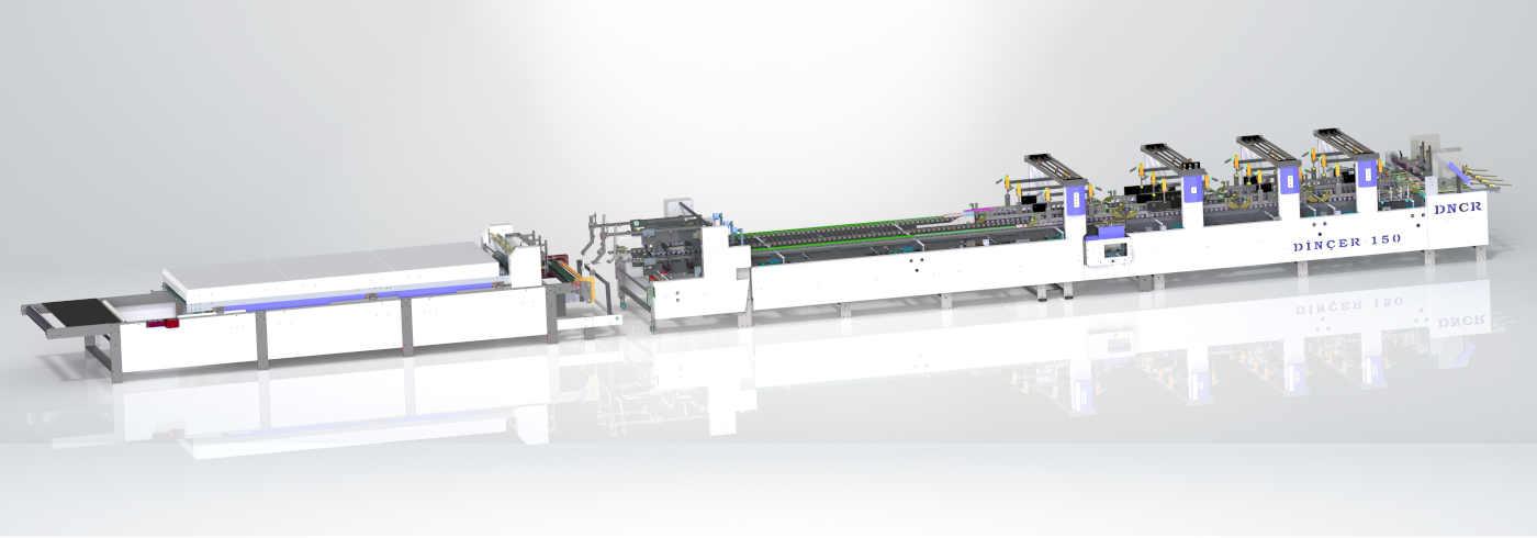 - DINCER Servo Back-folding system provides a continuous back folding function. By the Servo system, all carton set ups are recalled automatically after the carton flap size is entered to the system and thus no other set up is required for back folding electronical set up. Operator easily makes the parameter changes for different size and gramage of the boxes from the touch screen and these parameters are recorded in the machine memory to recall for future jobs.